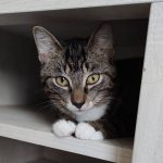 T. est un chat recueilli dans la rue, qui vivait avec moi depuis 9 mois au moment du soin. Dès son arrivée, T. a manifesté des signes assez évidents de mal-être/angoisse : il me suivait partout à la maison, miaulait dès que je n’étais plus dans la même pièce. La vue d’une couverture ou de n’importe quel vêtement posé sur un lit ou sur un canapé lui provoquait systématiquement de grosses « crises d’angoisses » : il s’emparait du vêtement et le trainait dans toute la maison en miaulant pour finir par « pattouner » frénétiquement dessus pendant plusieurs minutes. Au-delà de ses crises, T. était toujours sur le qui-vive, jamais complètement détendu. Très attaché à moi, il ne venait cependant jamais faire un câlin, et je ne l’avais jamais entendu ronronner. Après avoir testé sans résultat de lui donner des comprimés réputés pour apaiser le stress, j’ai contacté Emeline pour organiser un soin.